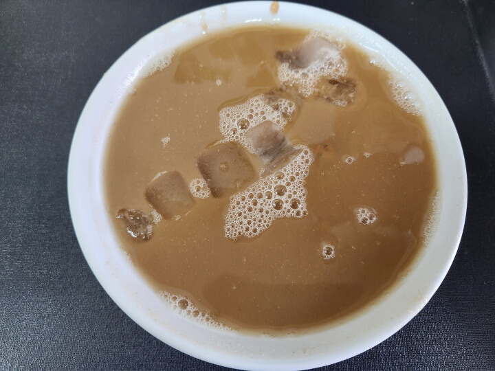 點完餐沒多久,學習家Manor我的綠豆湯上桌了,綠豆口感綿密又不會太甜,湯頭部分有股特別的焦香味,夏天喝上一碗清涼解渴。