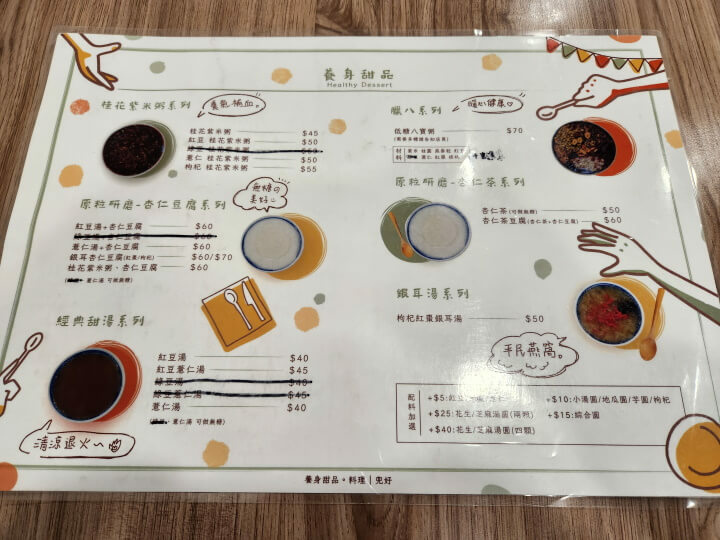 【店名】養身甜品。料理 兜好/府中/咖哩/沙拉/紫米粥/紅豆湯/