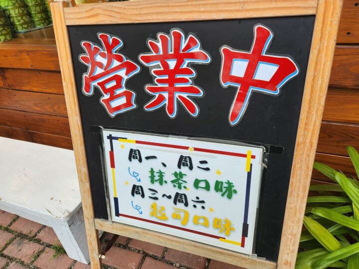 抵達目的地後,門口有每日口味,而此次前來的漢口店,周一、周二為抹茶口味,周三~周六為起司口味。