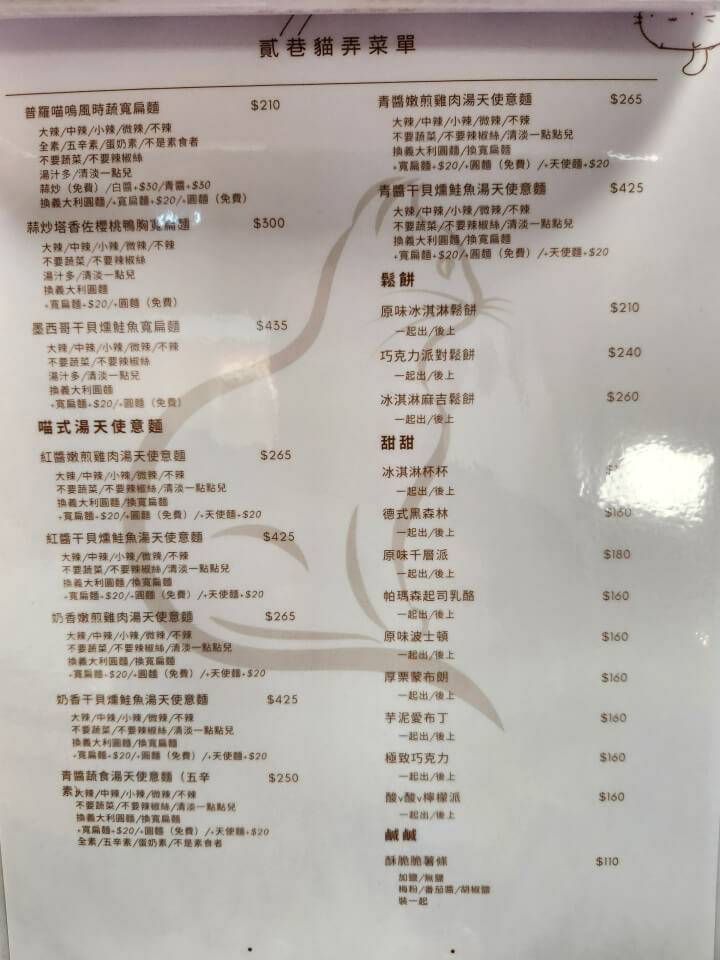接著是喵式湯天使意麵、鬆餅、甜甜及鹹鹹。