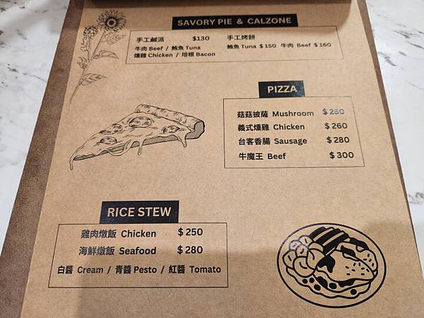 SAVORY PIE&CALZONE、PIZZA及RICE STEW。