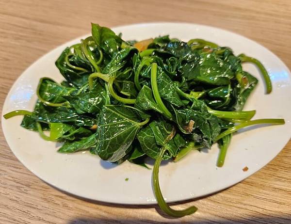 點完餐沒多久,學習家Manor我的地瓜葉先上桌,地瓜葉嫩又滑口,小缺點是份量少了點。