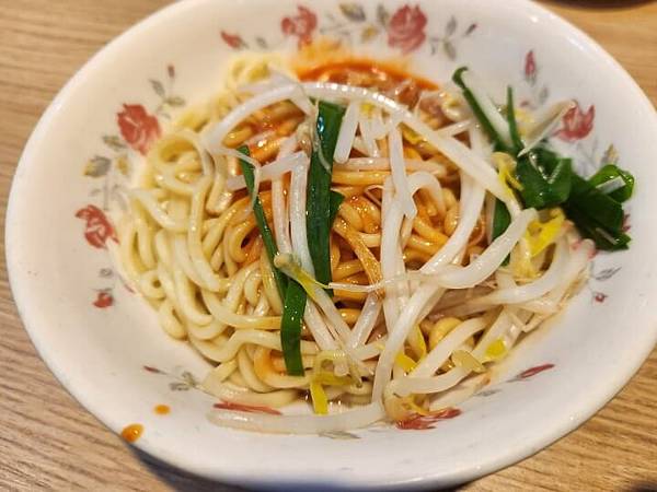 接著是切仔麵(乾),麵條吃起來還不錯,搭配甜辣醬的口感,如果再加點辣會更好吃。