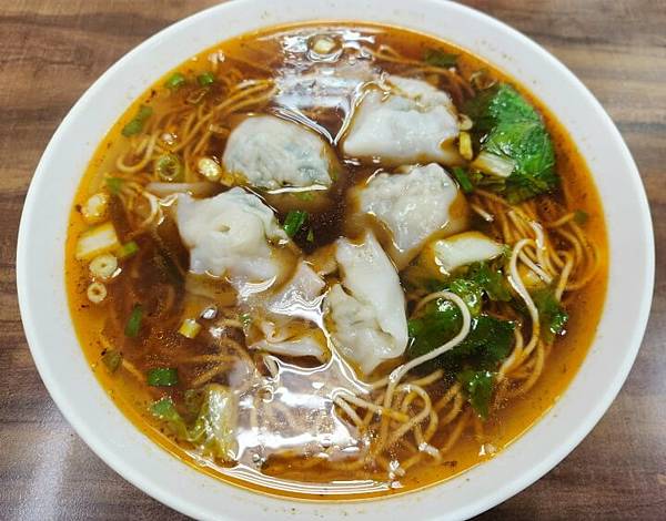 接著是牛肉湯餛飩麵,牛肉麵的湯頭,配上內餡飽滿的餛飩,整體而言還不錯。