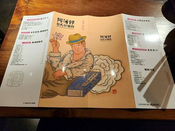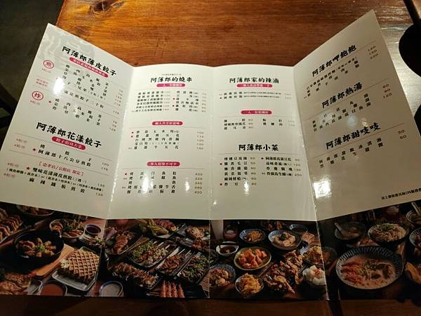 進店內找好位子後就來看看菜單,正面是阿薄郎薄皮餃子、阿薄郎花漾餃子、阿薄郎的燒串、阿薄郎家的辣滷、阿薄郎小菜、阿薄郎呷飽飽、阿薄郎熱湯及阿薄郎甜吱吱。