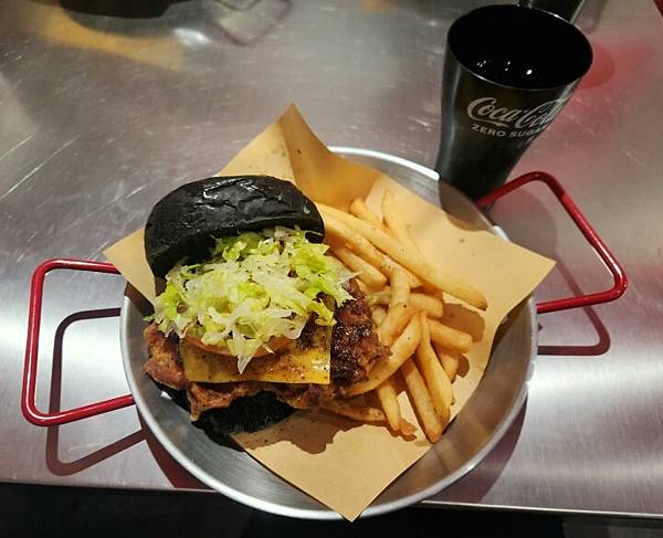 點完餐沒多久,學習家Manor我的椒麻炸彈脆雞堡上桌了,漢堡排紮實外,上頭淋上椒麻醬汁與漢堡皮搭配起來,口感挺不賴,另外升級套餐薯條飲料,薯條部分酥脆可口,飲料的話有飲料機自助吧喝到飽。