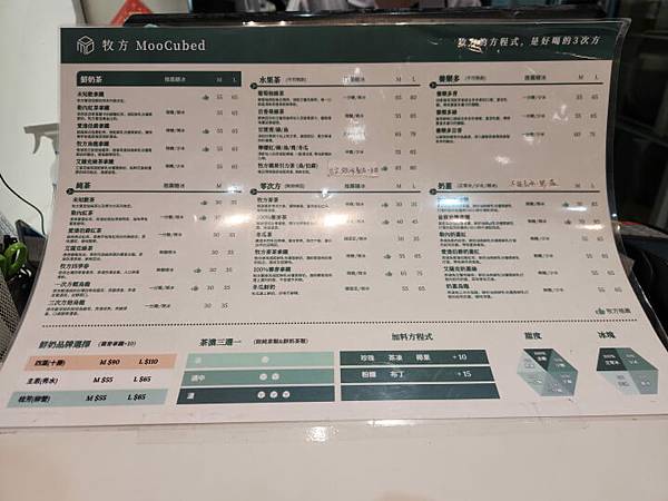 抵達目的地後先來看看菜單,飲品部分分成六大區塊,分別是鮮奶茶、純茶、水果茶、零次方、養樂多及奶蓋。
