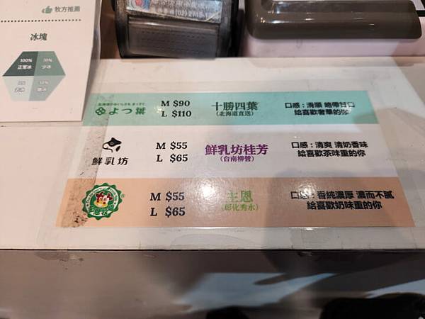 鮮奶的話還有三種品牌可供選擇,分別為十勝四葉(北海道直送)、鮮乳坊桂芳(台南柳營)及主恩(彰化秀水)。