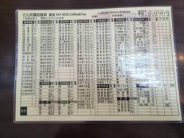 進店內找好位子後就來看看菜單,主要分成十四大區塊,分別為美味漢堡、高鈣乳酪餅、可頌麵包、鬆餅、西式燒餅、法式軟麵包、果醬貝果、精緻三明治、口味蛋餅、現烤披薩、中西餐點、貝果、各式冷熱飲料及現烤。