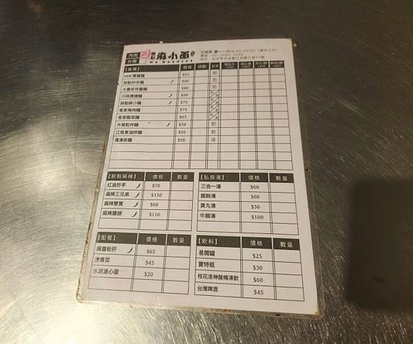 進店內找好位子後就來看看菜單,主要分成五大區塊,分別為飯麵、朕點麻辣、私房湯、配餐及飲料。