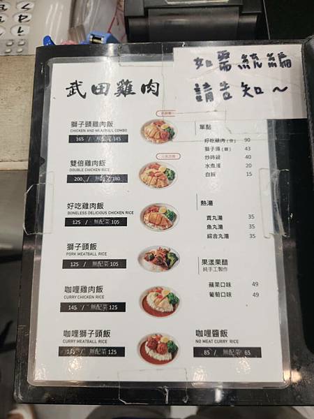 抵達目的地後就來看看菜單,主餐以飯類為主,另外還有單點、熱湯及果漾果醋。