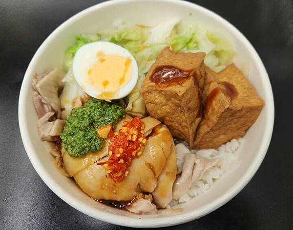 點完餐沒多久,學習家Manor我的好吃雞肉飯上桌了,雞肉口感軟嫩,搭配配菜一起吃,整體而言還不賴。