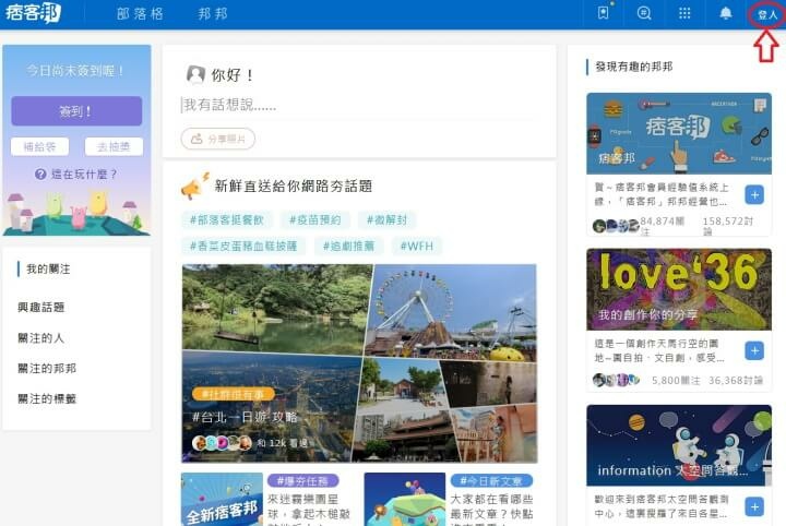 首先先至痞客邦首頁點選登入