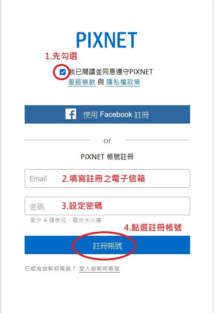 接著註冊新帳號( 以下以電子信箱註冊為例 )