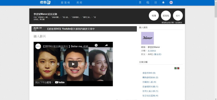 現在我們處在一個影音平台蓬勃發展的時代,雖然說部落格是以寫文章為主,但有時難免文字敘述不夠詳盡,需要搭配影片輔助講解,這時大家第一個想到的是否跟學習家Manor我一樣是Youtube影片呢?其實痞客邦是有這項功能的,只需照著以下幾個步驟,即可將其內嵌於文章當中喔!