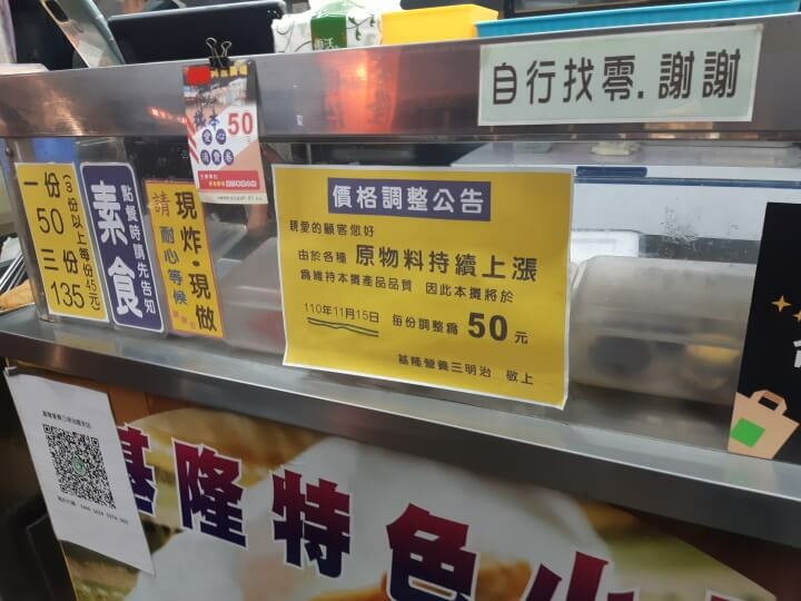店內沒內用位子只做外帶,價位的話一份50元,三份以上平均每份45元。