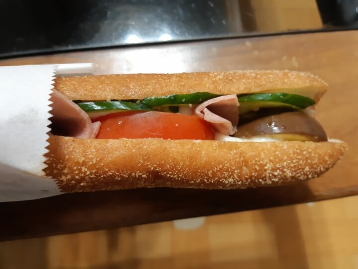 接著帶大家看看裡面有哪些食材,像是番茄、小黃瓜、滷蛋、火腿等等,外皮部分炸得相當酥脆,整體口感滿好吃的。