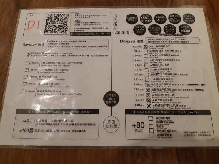 進店內等店員分配好位子後就來看看菜單,正面是鹹食和甜點區,以及一些店內須知。