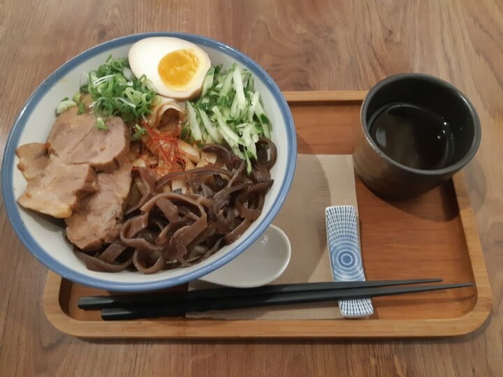 點完餐沒多久,學習家Manor我的重慶麻辣乾拌麵上桌了,醬汁有花椒的椒麻香,搭配上對我而言微辣的口感,拌上麵條後不知不覺一口接著一口,頭一次吃就令人愛上。