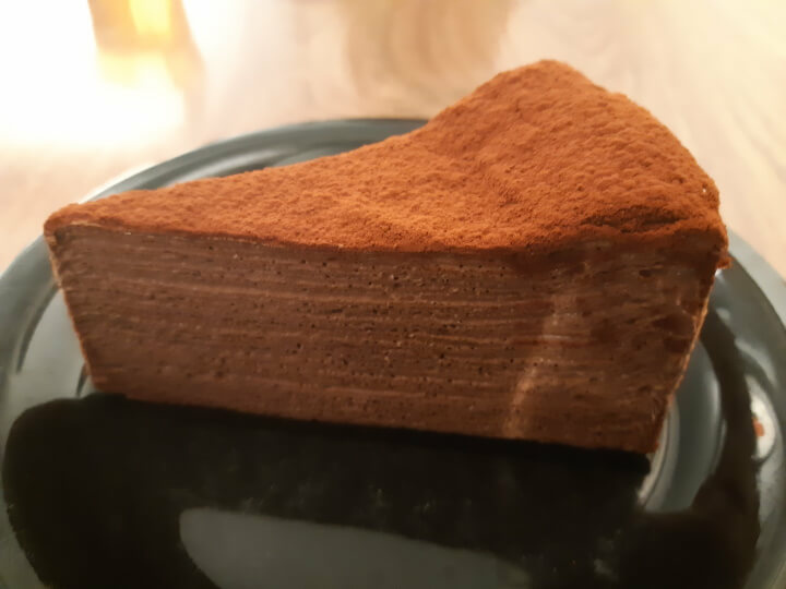 接著是法芙娜可可千層蛋糕,口味不會死甜且可可的香氣十足外,在嘴裡的層次感一層接著一層,相當推薦啊。