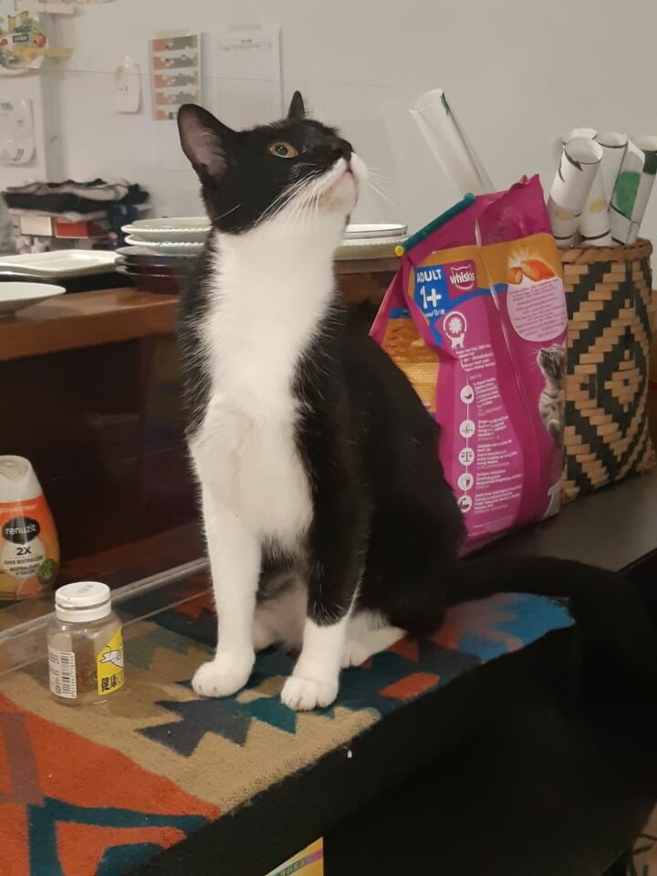 在吃東西的時候貓咪也跑出來露露臉,一個傲嬌style哈哈哈。