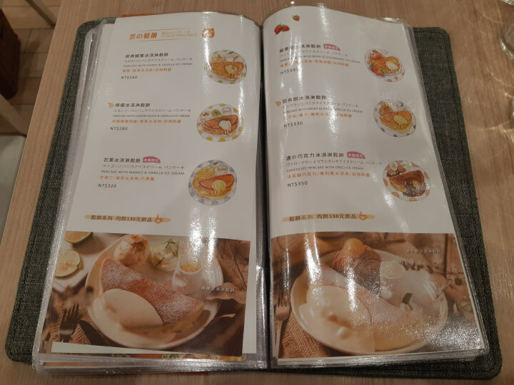 因為這次的目的是吃鬆餅,所以就直接翻到該頁,當然除了鬆餅外也有許多餐點,就不一一介紹了。
