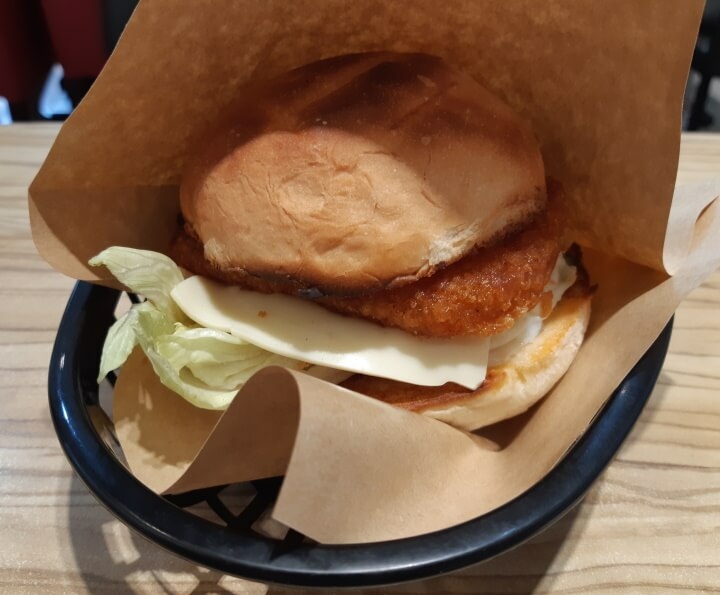 再來是薯餅濃起司漢堡,漢堡皮介於軟與脆之間,整體與內層餡料結合的恰到好處,吃完飽足感滿夠的。