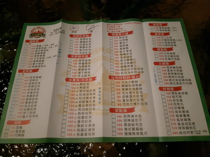 建議大家開車或騎車來比較方便,店門口就有停車位,接著進店內找好位子後就來看看菜單(有分成戶外區及室內區),除了飲品外還有鬆餅、簡餐、炸物等食物可供挑選。