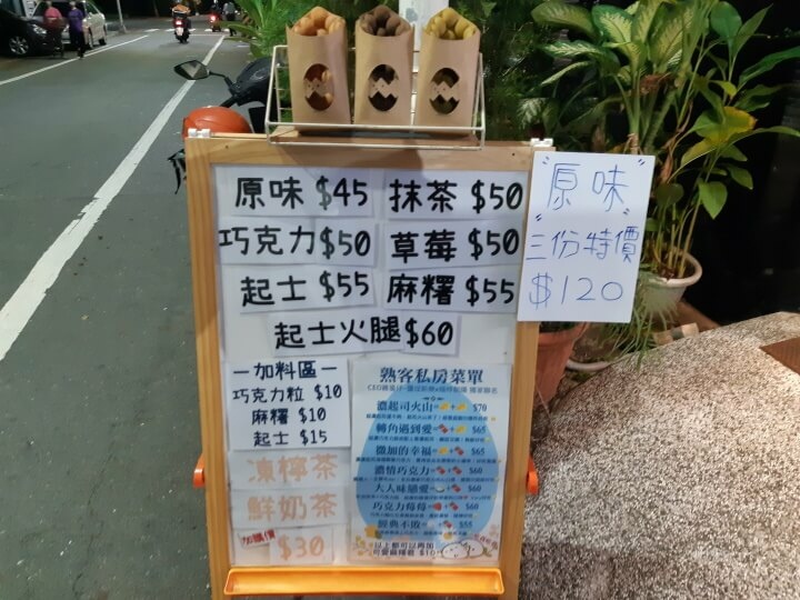 抵達目的地後就來看看菜單,雞蛋仔口味不少種,除此之外還有賣一些飲品。